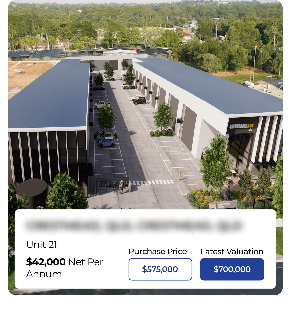 In late 2023, one of our investors secured a Micro Warehouse at Sherbrooke Road in Willawong, a booming industrial hub just 19 kilometres from Brisbane CBD. The purchase price was $575,000, requiring a 10 percent deposit of just $57,500. By the time construction finished in mid-2025, the property was market appraised at $700,000, delivering an equity uplift of $125,000.