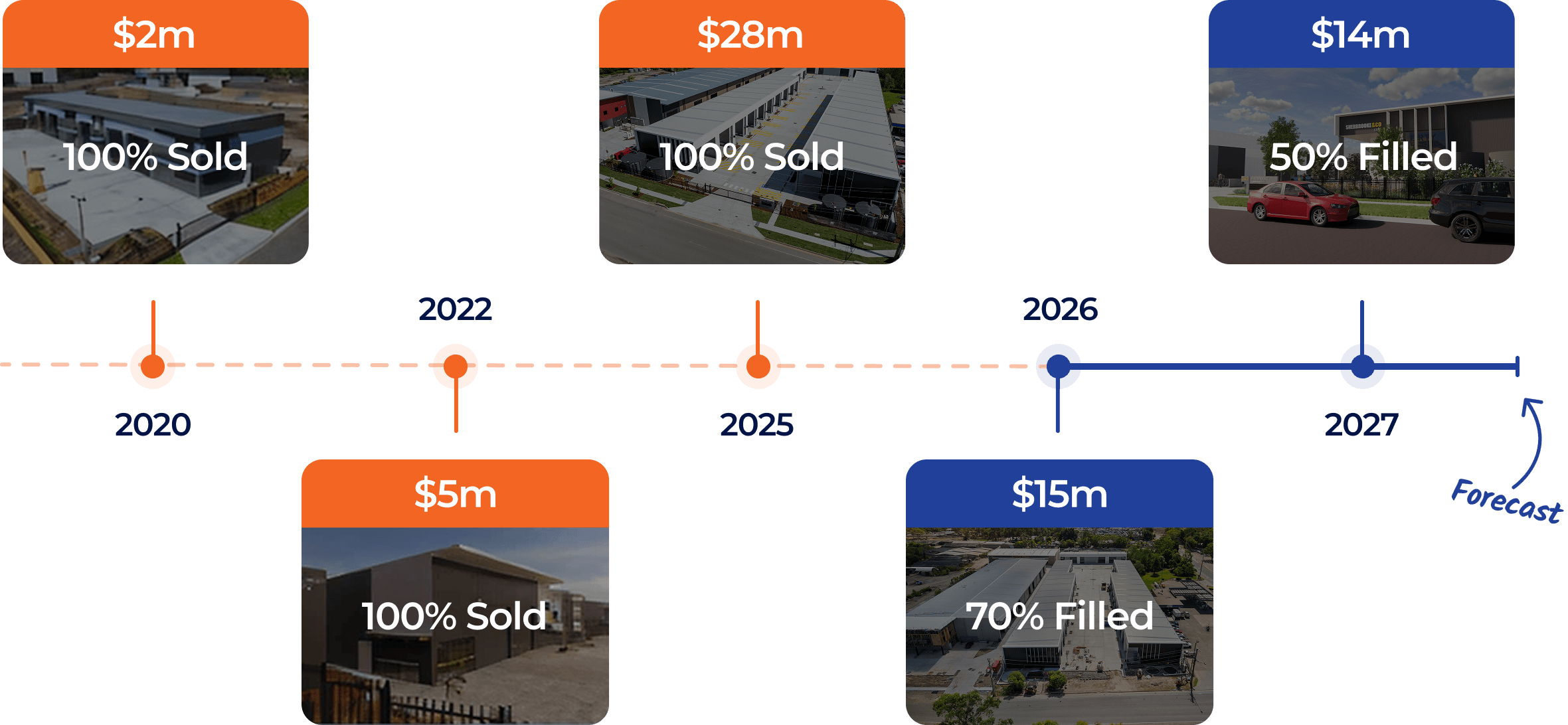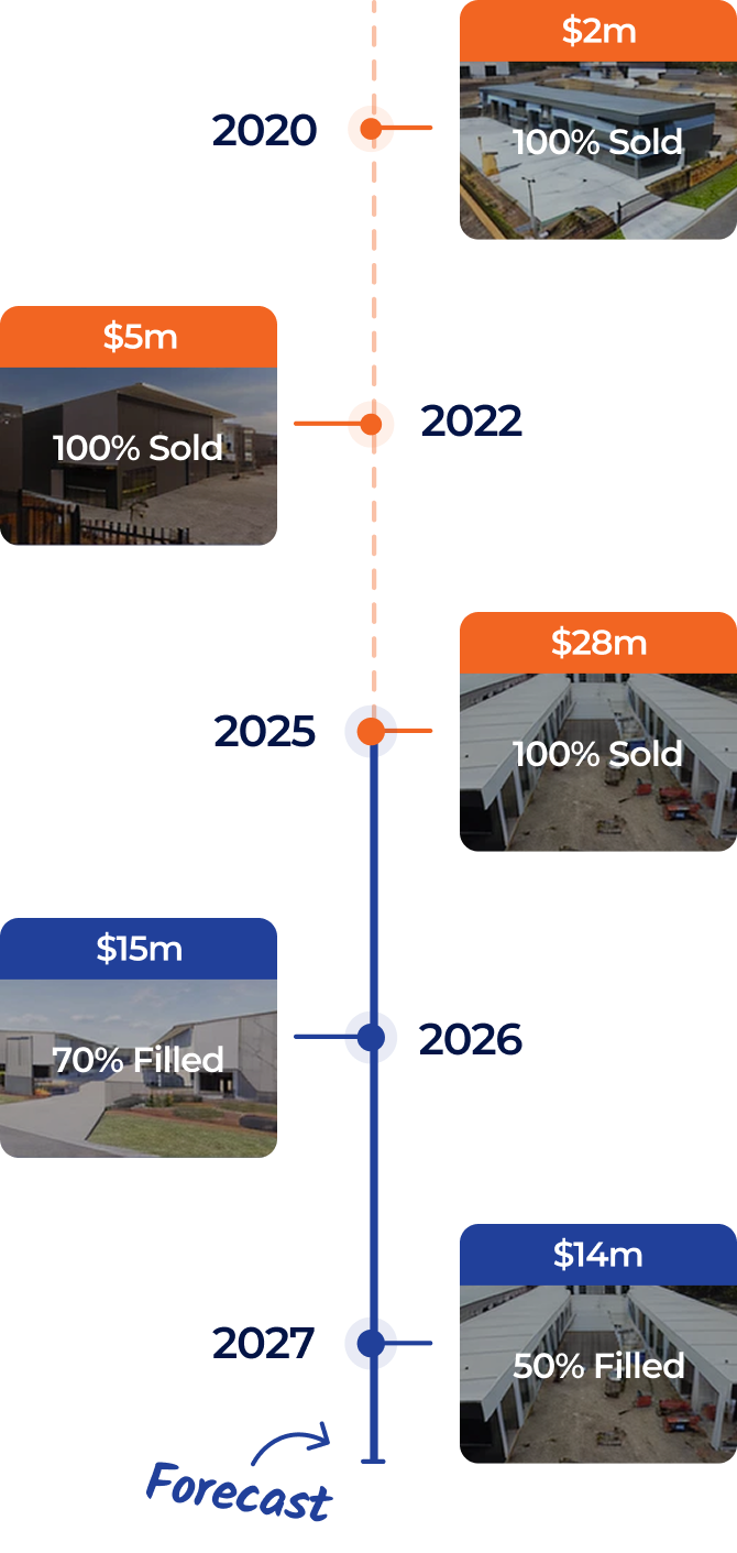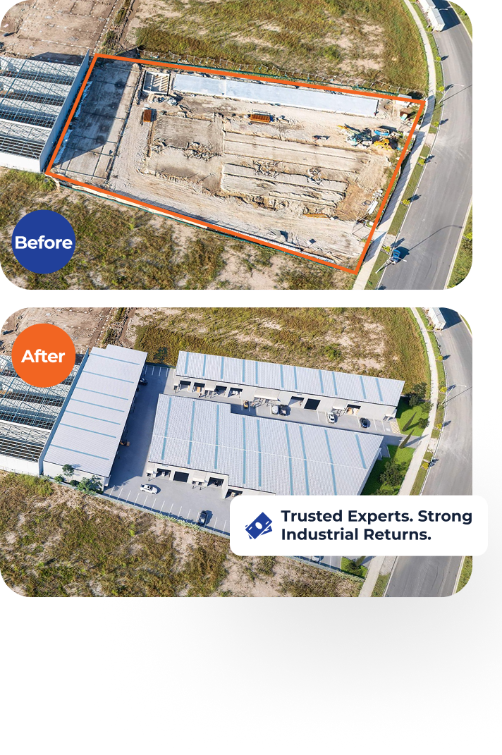 We specialise in tenant-ready Micro Warehouses that generate strong rental income and equity growth. Every site is selected using our proprietary precinct-tagging system, backed by detailed feasibility and real demand. This means you get access to high-yield properties in high-demand locations with long-term upside—without the stress or guesswork of going it alone.